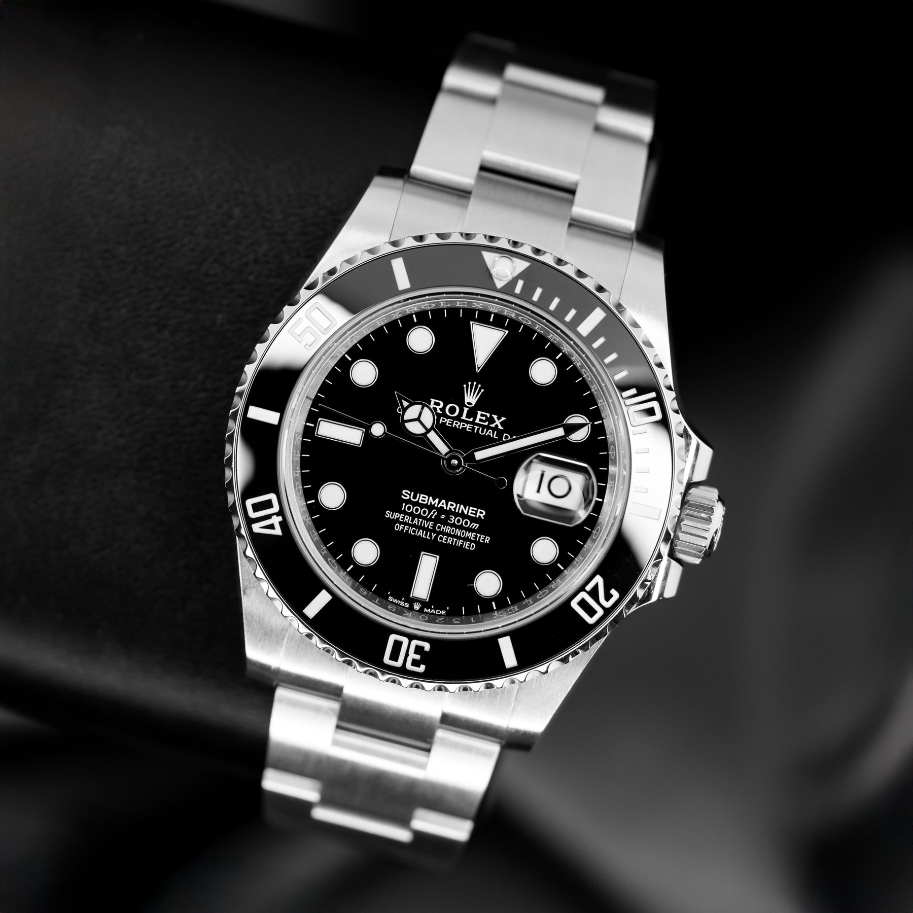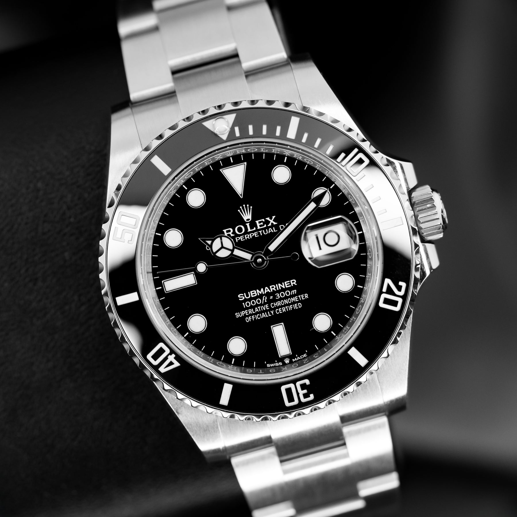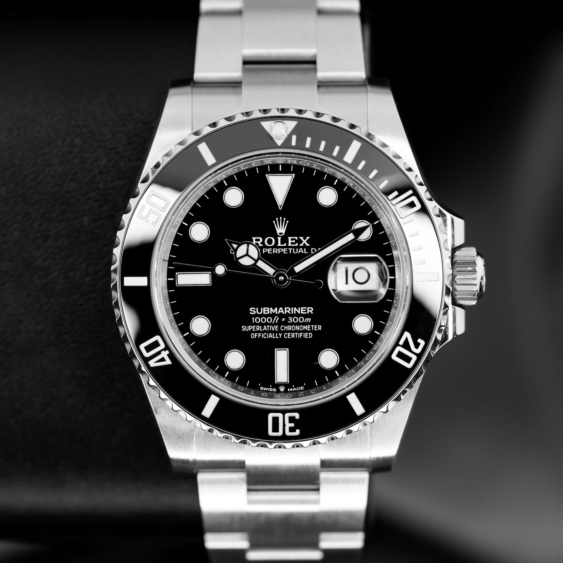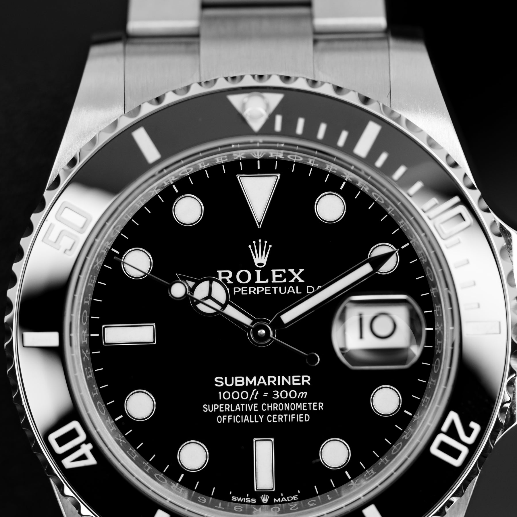 The Submariner Date Ref. 126610 was a huge step forward for the Submariner line when it was introduced in 2020. This model in particular is the 126610LN, "LN" standing for "Lunette Noir" and denoting the black bezel. Time and again the Submariner is heralded as the perfect one-watch collection, fit for any occasion. It can handle extreme temperatures and depths, a black tie gala, or a day at home. For value, history, fit, finish, function, and practicality, there is simply nothing that comes close to the Submariner. The 41mm 904L Oystersteel case is fitted with a black Cerachrom unidirectional dive bezel and paired with the classic Oyster bracelet, featuring the best quick adjust system on the market – Glidelock. Powering the 126610LN is Rolex's in-house Caliber 3235 automatic movement with 70 hours of power reserve.
