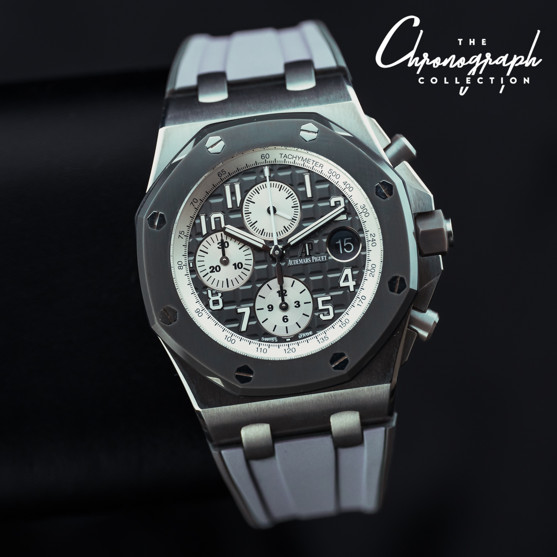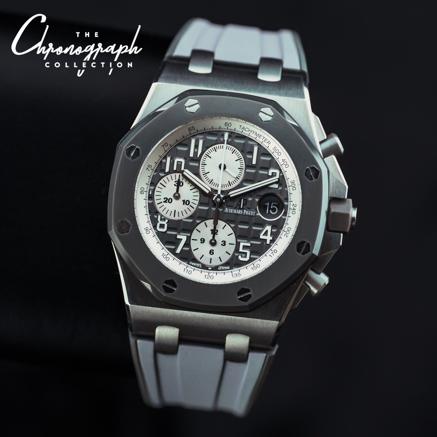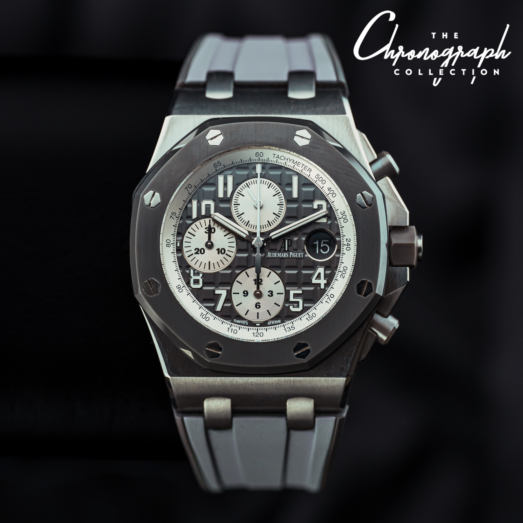 The Audemars Piguet Royal Oak Offshore 26470IO "Ghost" is a sports watch in every sense. It combines elements from various Offshore models to create this near-perfect iteration. The 42mm case of the "Ghost" is made from titanium, with a fully ceramic bezel, crown, and pusher set. This watch also features 100 meters of water resistance and the classic Offshore silicone strap, making it perfectly equipped for any adventure. Powering the "Ghost" is Audemars Piguet's in-house Caliber 3126/3840 automatic movement with 50 hours of power reserve.