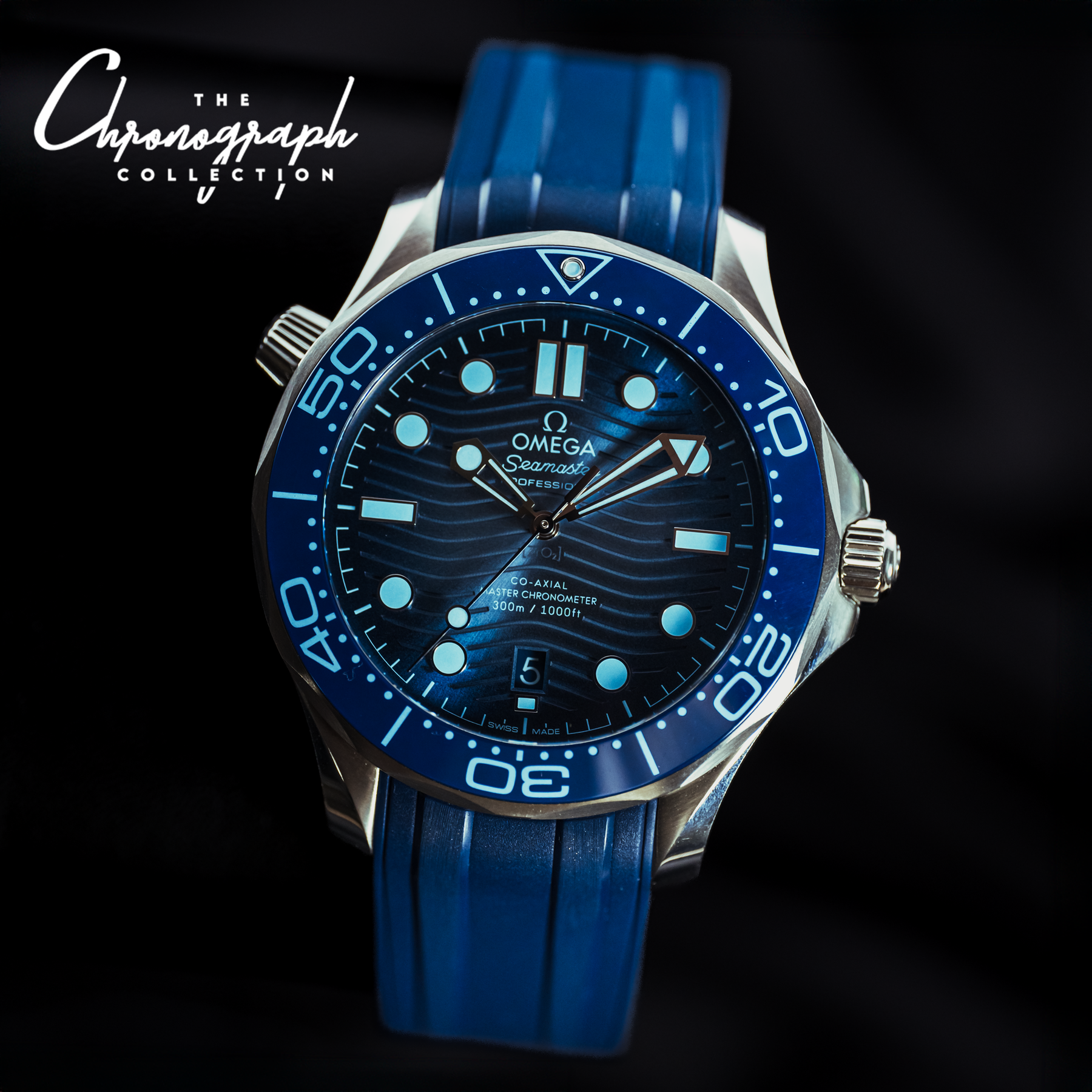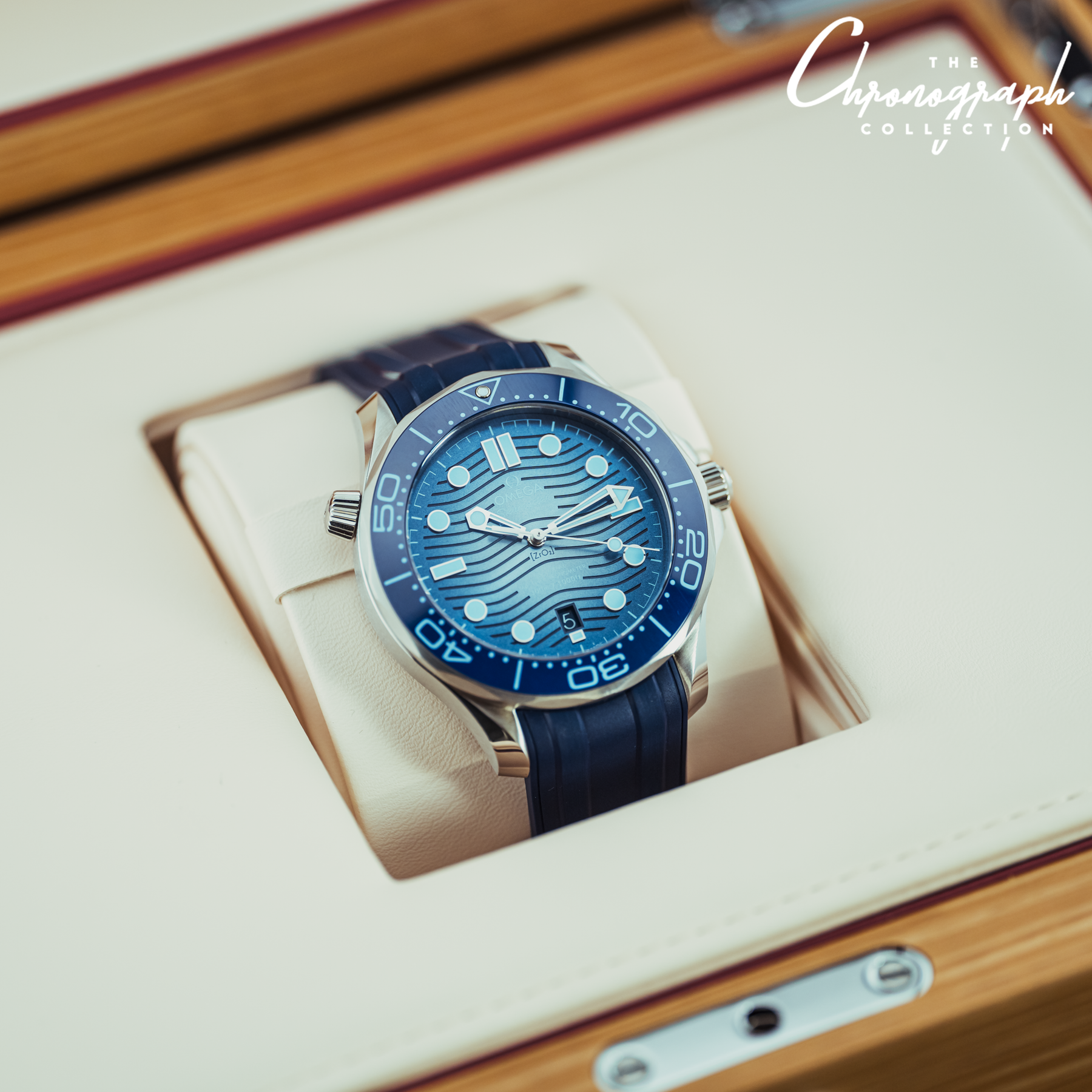 This iteration of the Omega Seamaster Professional carries not only a special color combination, but an important story as well. Introduced in 2023, along with identical versions of the other Seamaster models, this watch marked the 75th anniversary of the Seamaster line. These models break away from traditional Seamaster design, featuring ceramic, PVD-treated "Summer Blue" dials that fade from light to dark, similar to the "James Cameron" Sea-Dweller. This Seamaster also features other small differences, like a specially colored ceramic dive bezel, specially colored indices, and even a blue Super-LumiNova that is unique to the 75th Anniversary edition. Powering this watch is Omega's in-house Caliber 8800 automatic movement that is covered by a special Seamaster caseback.
