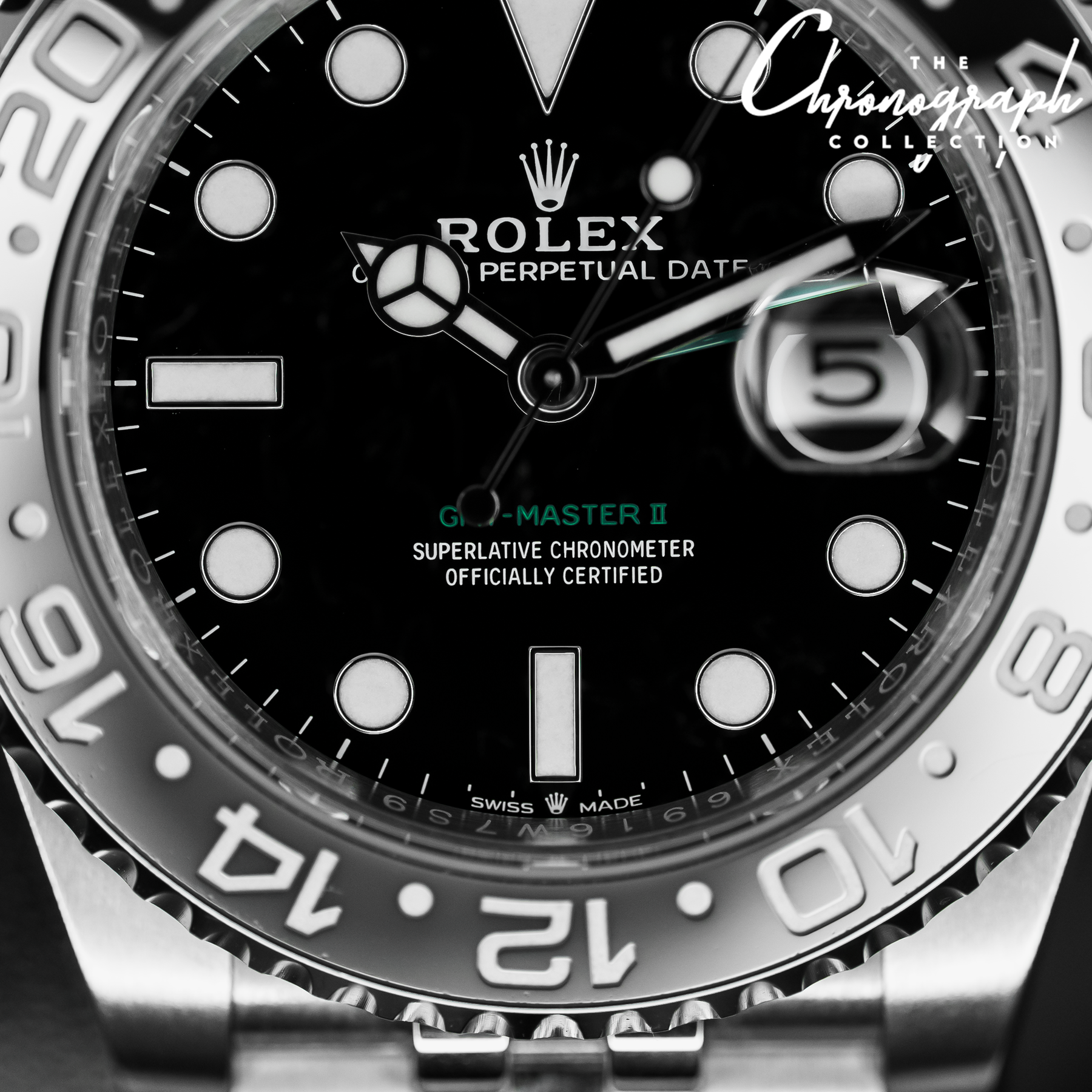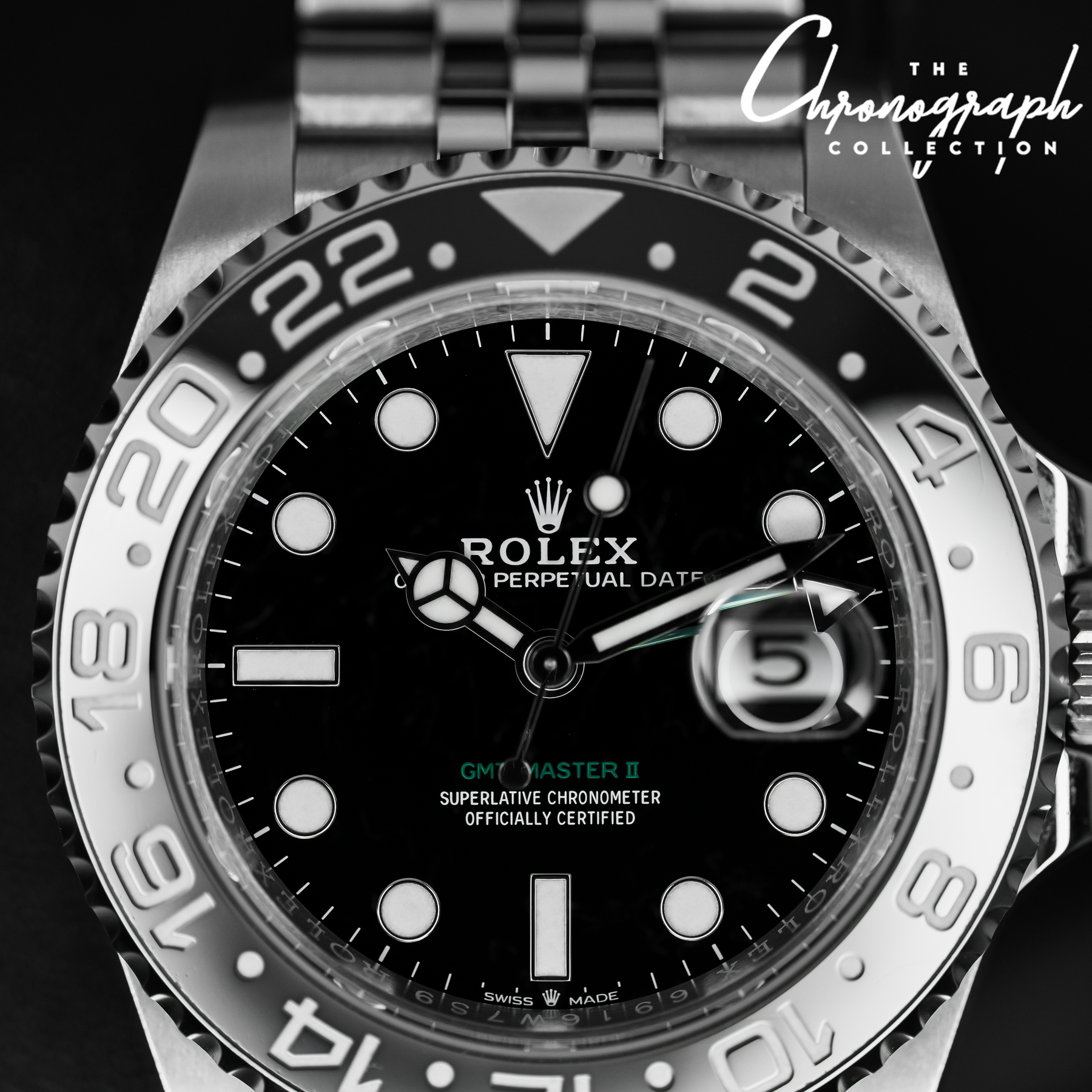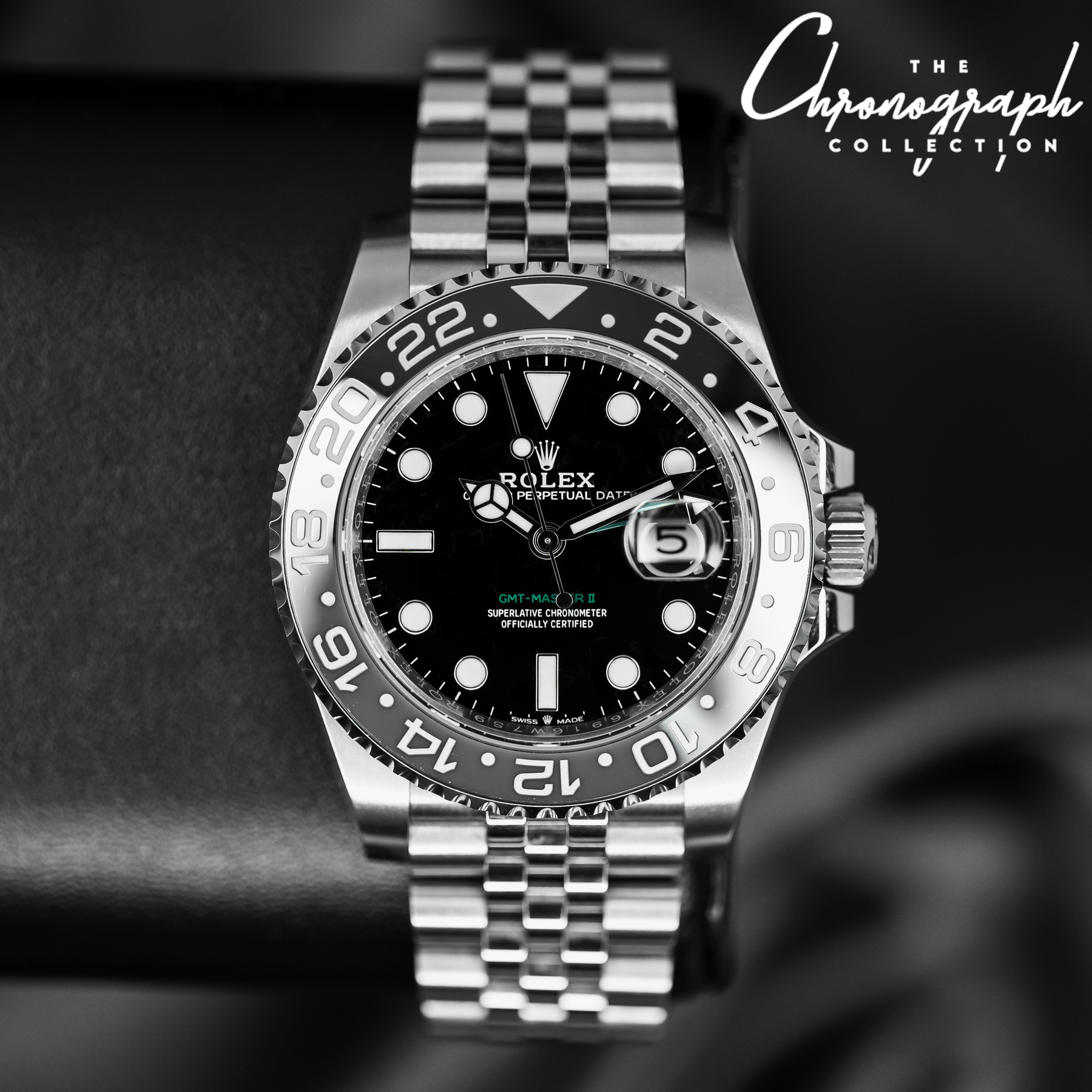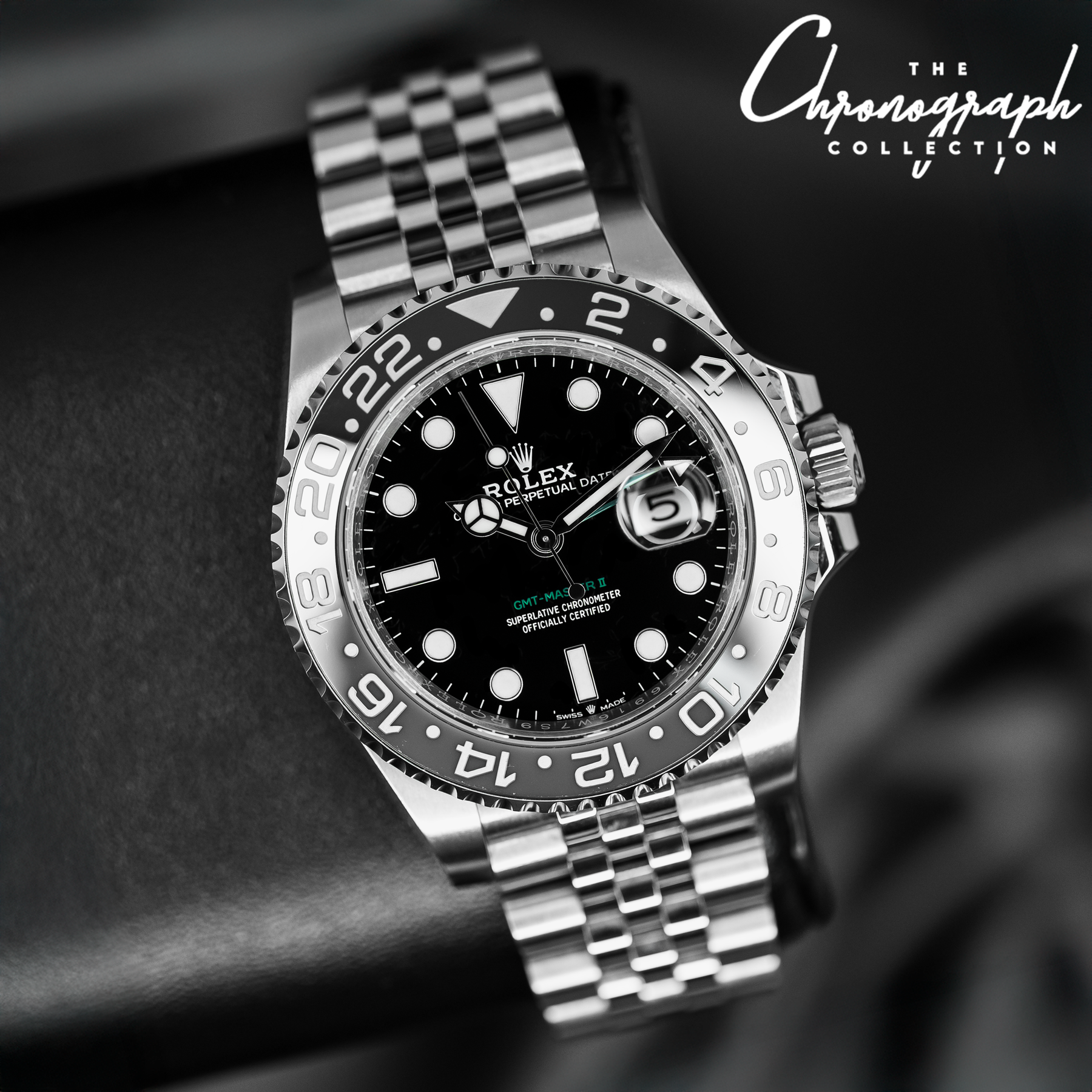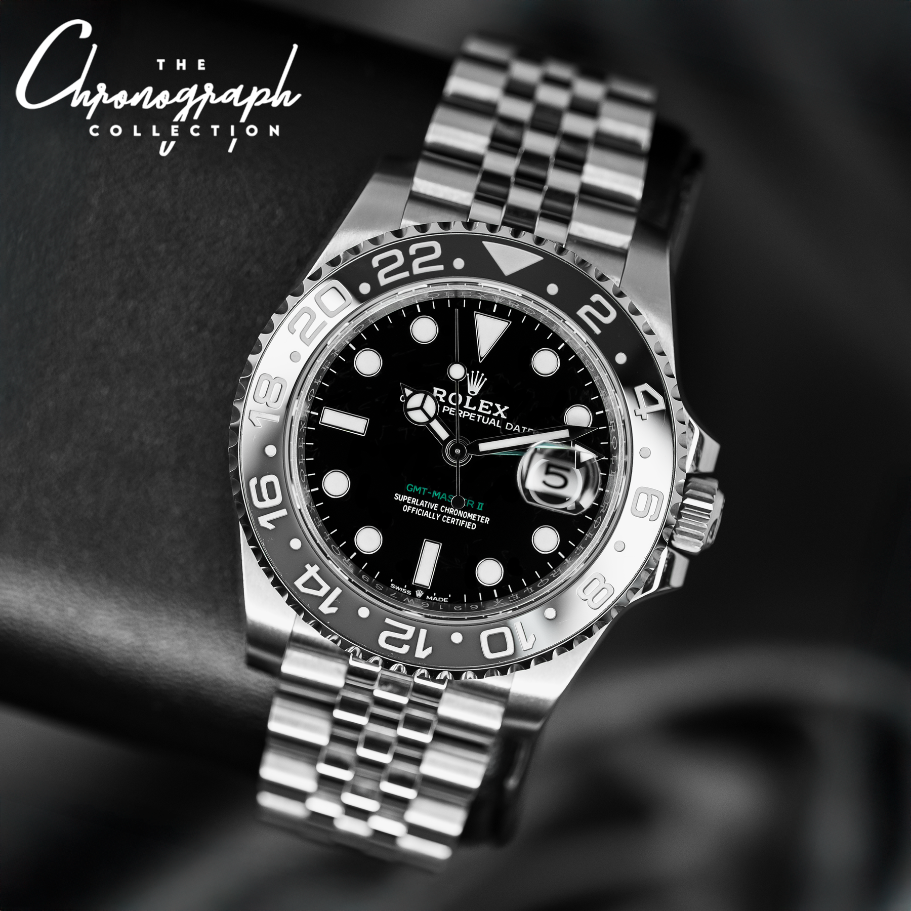 The GMT Master II “Bruce Wayne” is currently one of Rolex’s most desirable steel models. It features the most subdued color combinations of any current GMT Master II, sporting a black and grey bezel and a subtle pop of color with a green GMT hand. Paired with the Jubilee bracelet, the 126710GRNR is near perfection. Powering the “Bruce Wayne” is Rolex’s in-house Caliber 3285 with 70 hours of power reserve.