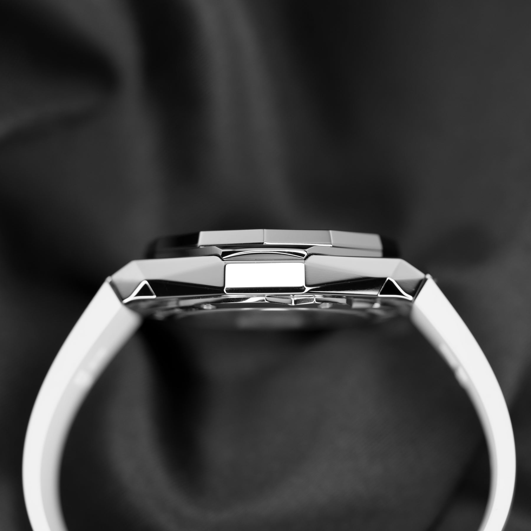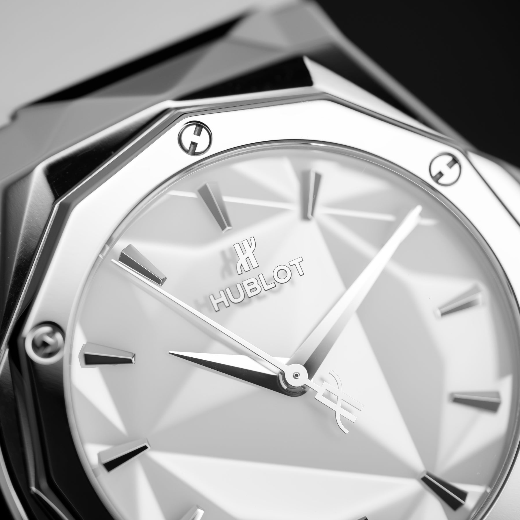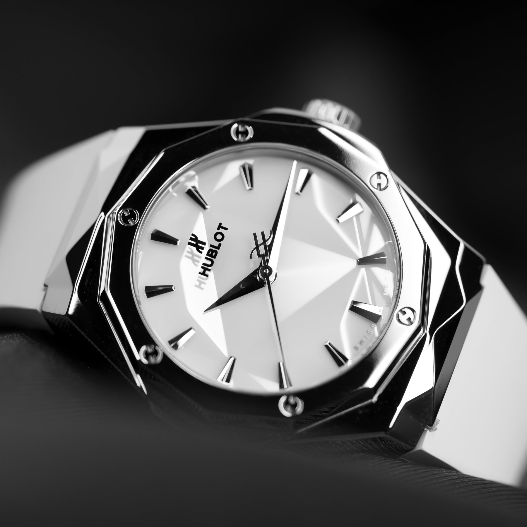 The Classic Fusion Orlinski was, as the name implies, designed in collaboration with French artist Richard Orlinski. He is more commonly known for designing the French Grand Prix trophies from the track's reintroduction to the F1 calendar in 2018 up until the event's last race in 2022. The case of this Classic Fusion is made from titanium and is fitted to a smooth white rubber strap with a deployment clasp. Both the case and white dial of the Fusion carry Orlinski's fingerprint, with his iconic angular design. Powering this watch is Hublot's in-house Caliber HUB1100 automatic movement with 42 hours of power reserve.