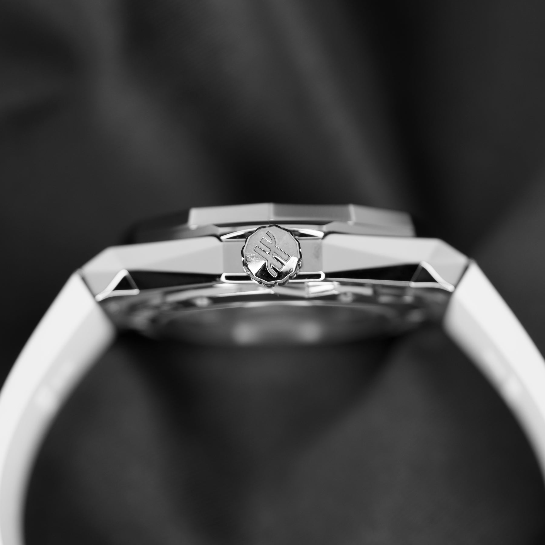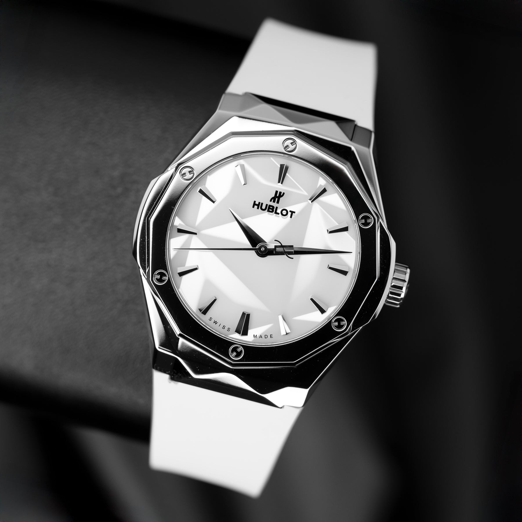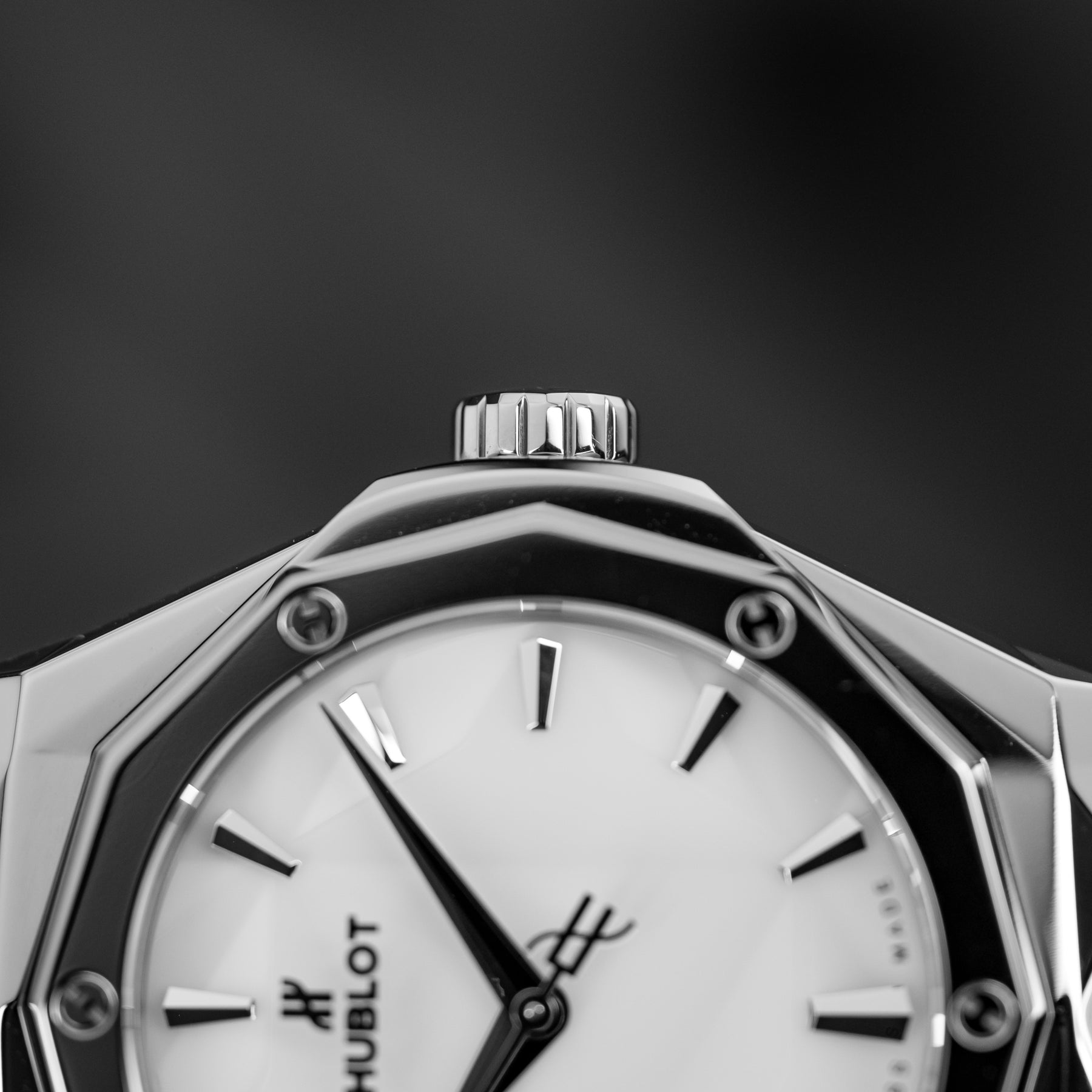 The Classic Fusion Orlinski was, as the name implies, designed in collaboration with French artist Richard Orlinski. He is more commonly known for designing the French Grand Prix trophies from the track's reintroduction to the F1 calendar in 2018 up until the event's last race in 2022. The case of this Classic Fusion is made from titanium and is fitted to a smooth white rubber strap with a deployment clasp. Both the case and white dial of the Fusion carry Orlinski's fingerprint, with his iconic angular design. Powering this watch is Hublot's in-house Caliber HUB1100 automatic movement with 42 hours of power reserve.
