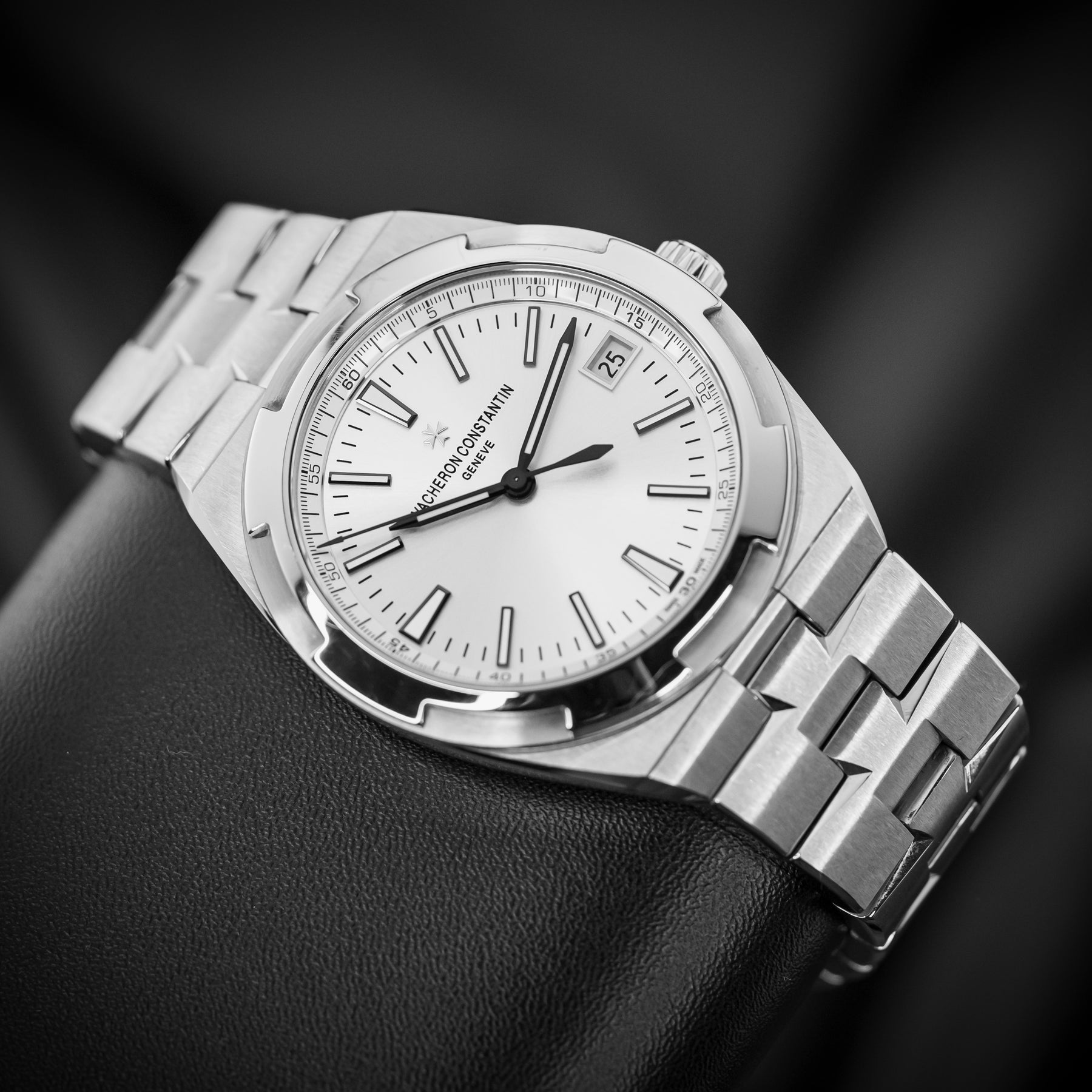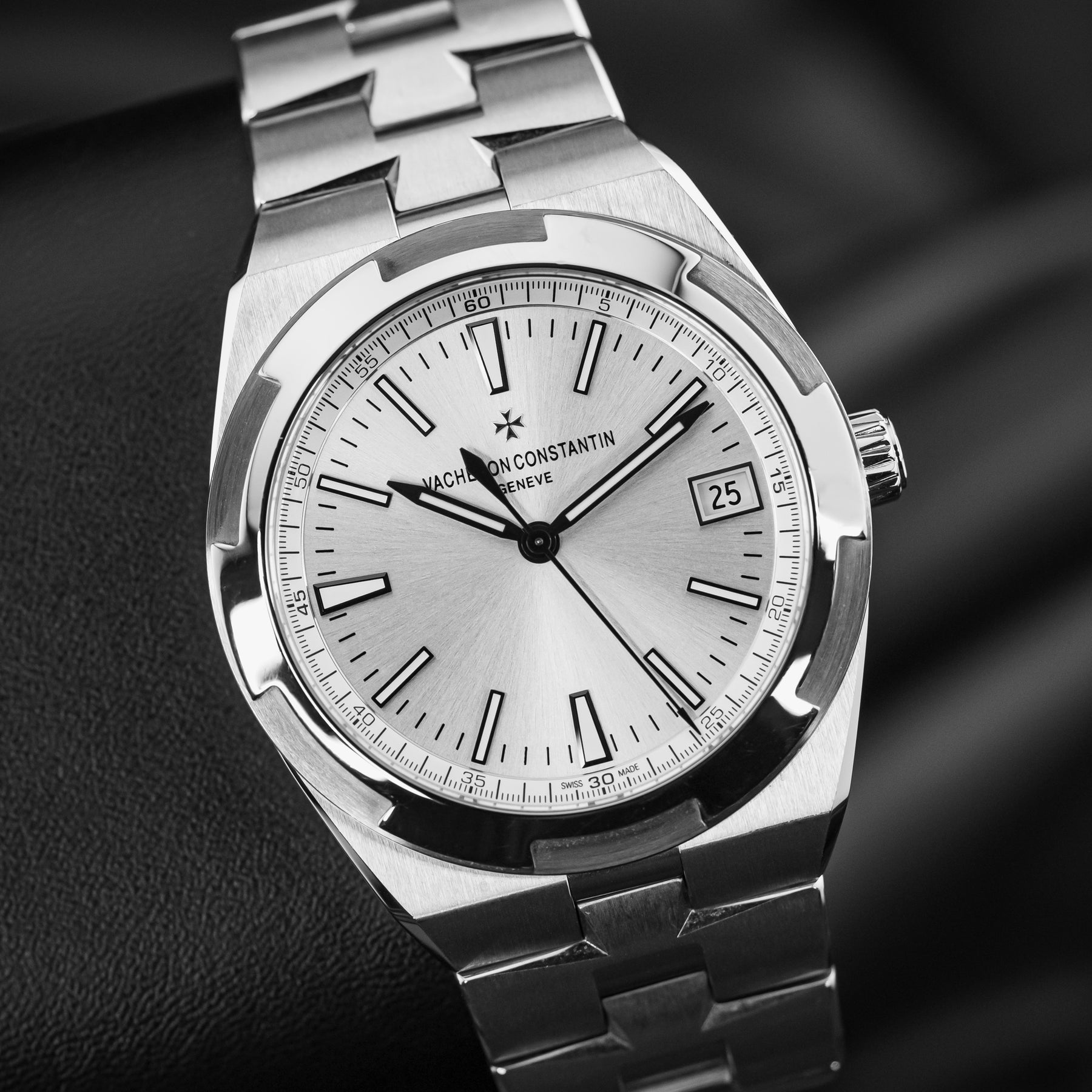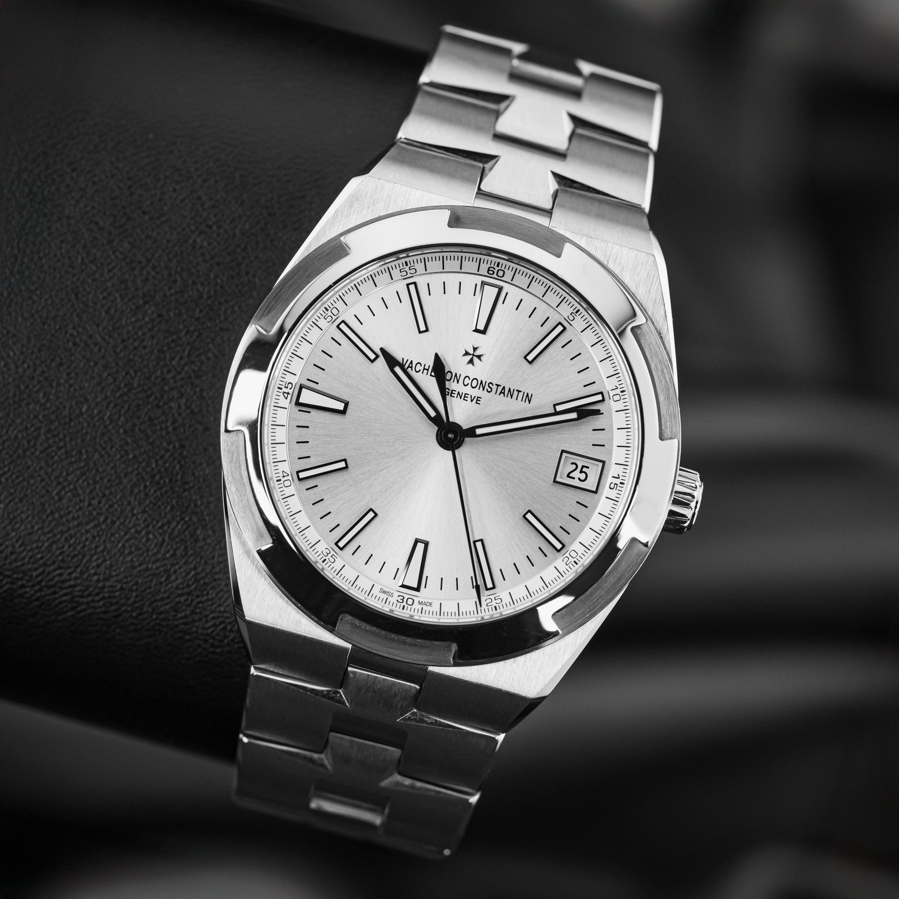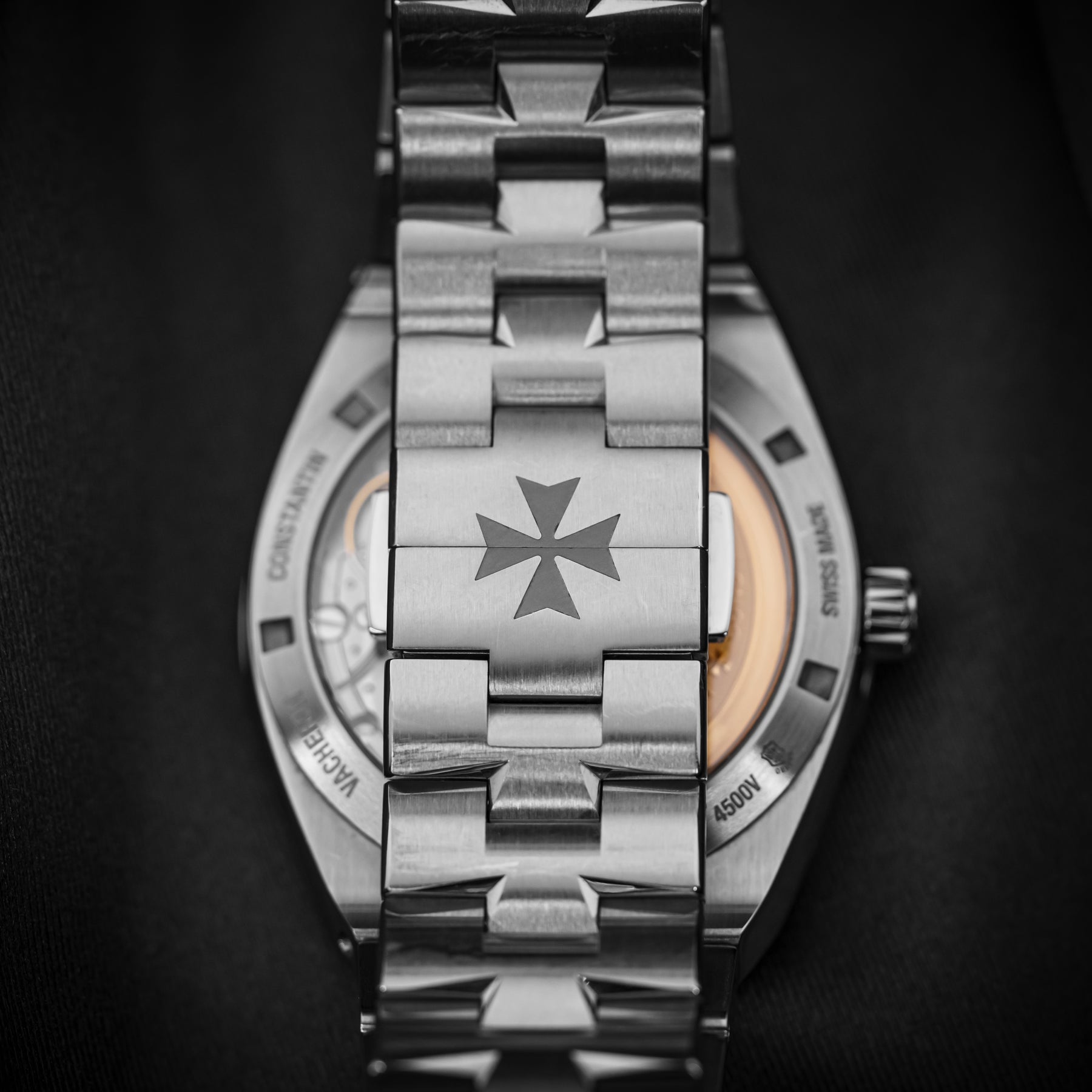 Coming from the longest running watch brand in the world, the VC Overseas 4500V is a flagship classic and stunning in every regard. The watch features an integrated stainless steel bracelet with links that mimic the brand's Maltese cross emblem, with a silver dial. VC is known for its rich dials. Powering the 4500V is VC’s in-house 5100 automatic movement with 60 hours of power reserve, visible through a sapphire display caseback.