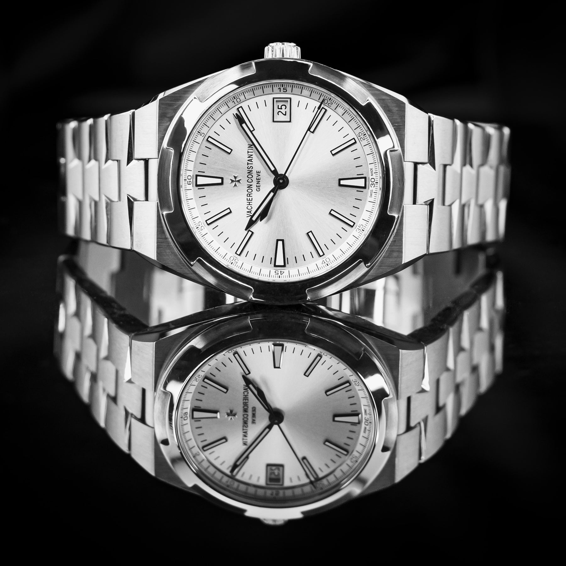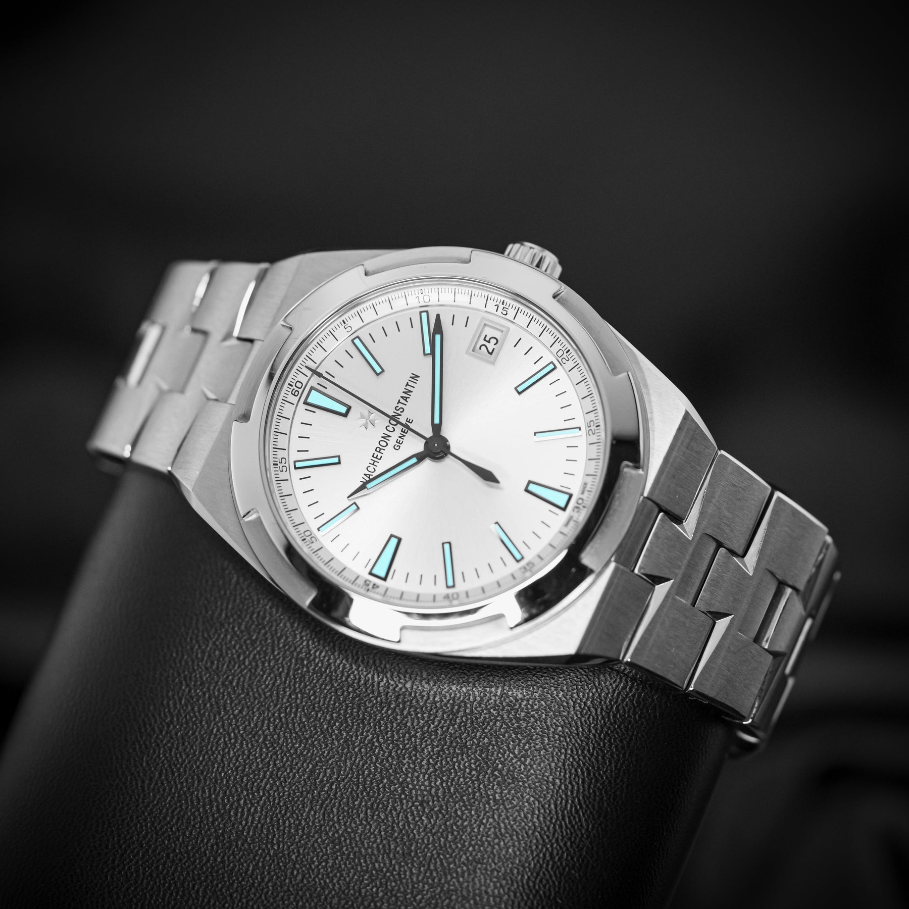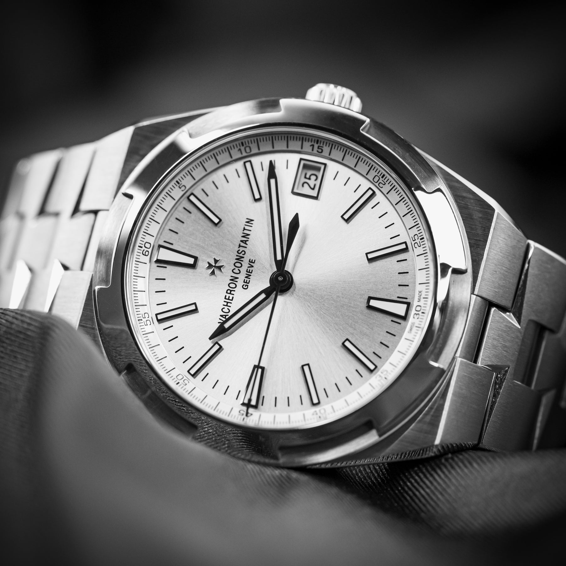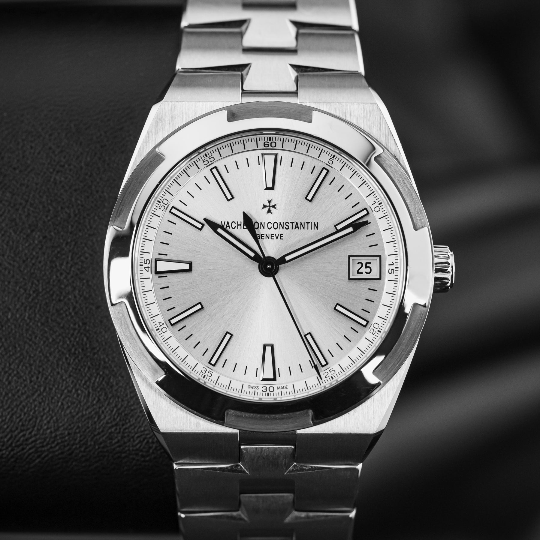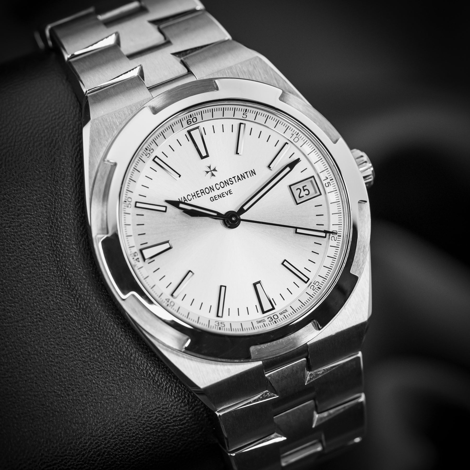 Coming from the longest running watch brand in the world, the VC Overseas 4500V is a flagship classic and stunning in every regard. The watch features an integrated stainless steel bracelet with links that mimic the brand's Maltese cross emblem, with a silver dial. VC is known for its rich dials. Powering the 4500V is VC’s in-house 5100 automatic movement with 60 hours of power reserve, visible through a sapphire display caseback.
